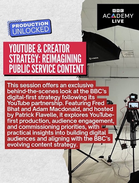 We’re delighted to be hosting BBC Academy Live: Production Unlocked on Wednesday 29th April. A day of free masterclasses, panel discussions and expert advice for those who work in, or want to work in, the creative industries.